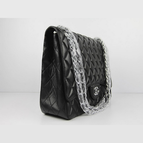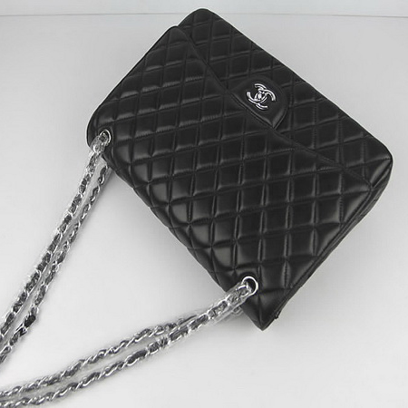 Chanel Flap Bag Quilted Black Lambskin with Silver Chain 1116