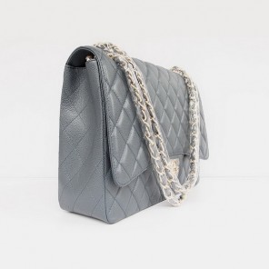 Chanel Flap Bag Quilted Gray Caviar with Gold Chain 1116