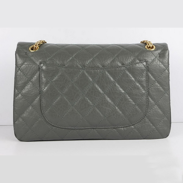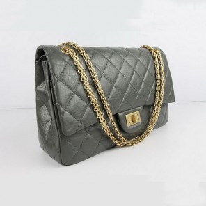 Chanel Flap Bag Quilted Gray Leather with Gold Chain 48102