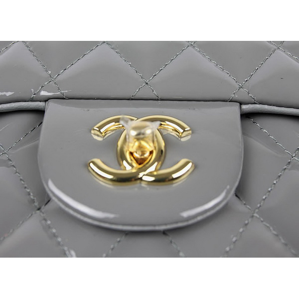 Chanel Flap Bag Quilted Gray Patent with Gold Chain 1116