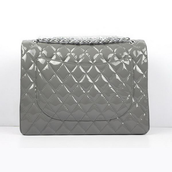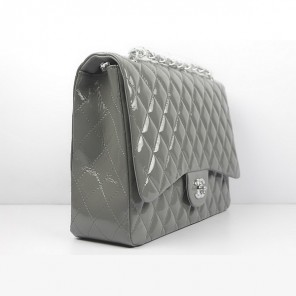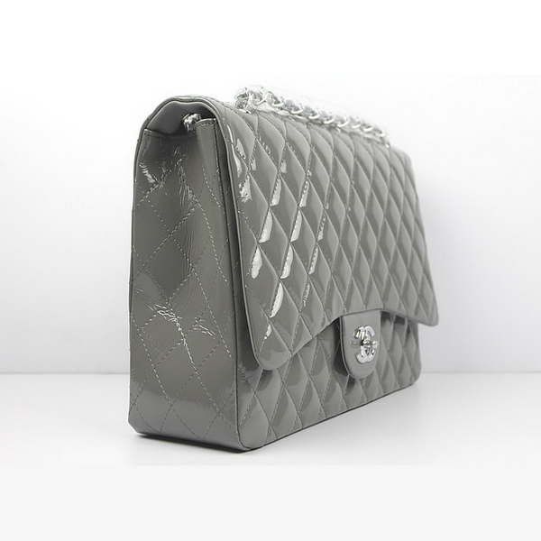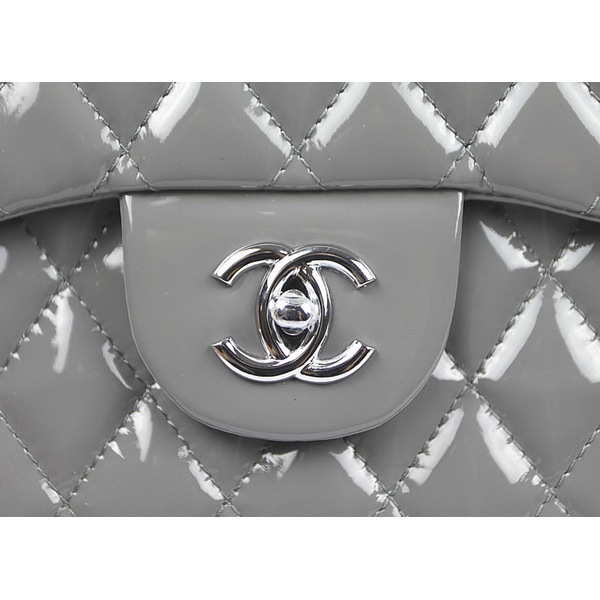 Chanel Flap Bag Quilted Gray Patent with Silver Chain 1116