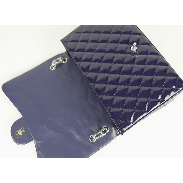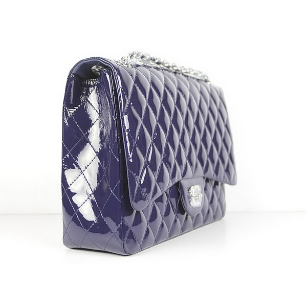 Chanel Flap Bag Quilted Navy-Blue Patent with Silver Chain 1116
