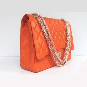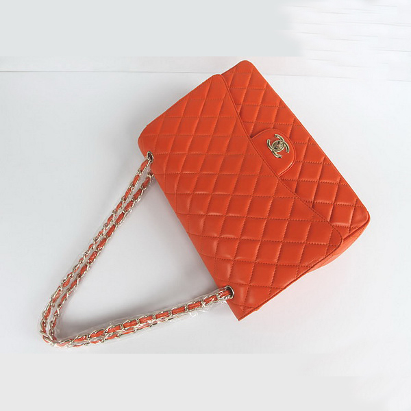 Chanel Flap Bag Quilted Orange Lambskin with Gold Chain 1116