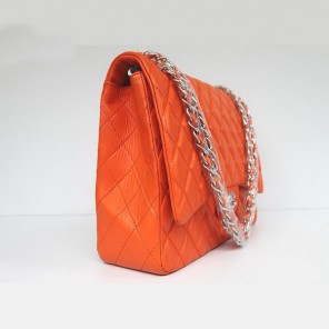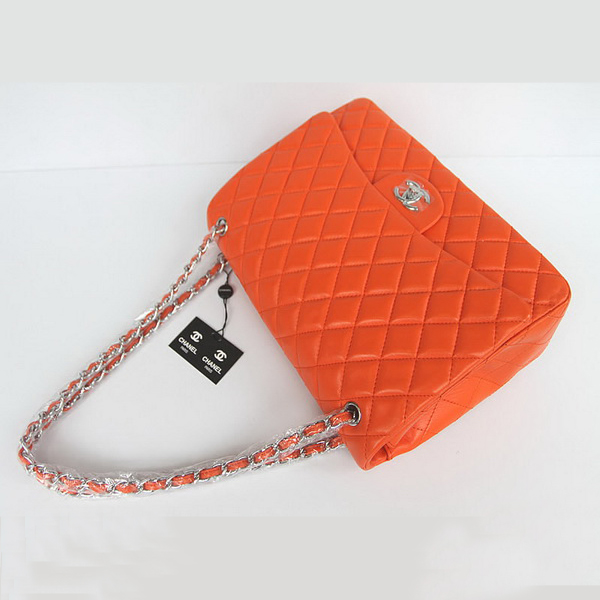Chanel Flap Bag Quilted Orange Lambskin with Silver Chain 1116