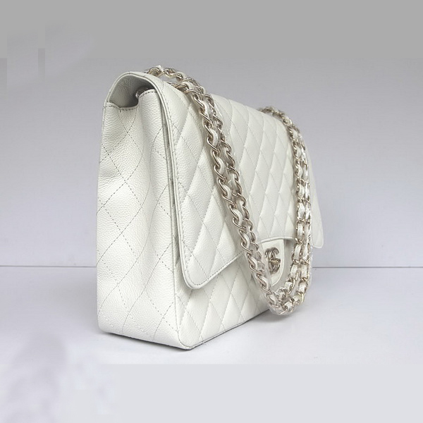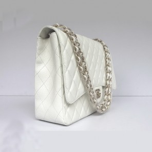 Chanel Flap Bag Quilted White Caviar with Gold Chain 1116