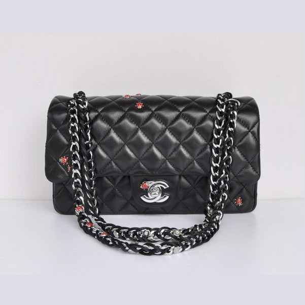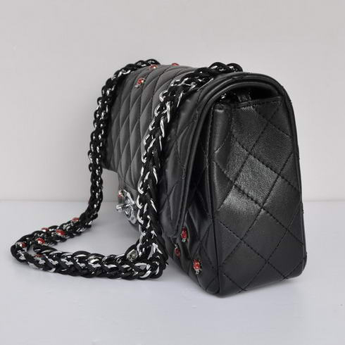 Chanel Insect Lambskin Leather Flap Bag 1112 Black Silver