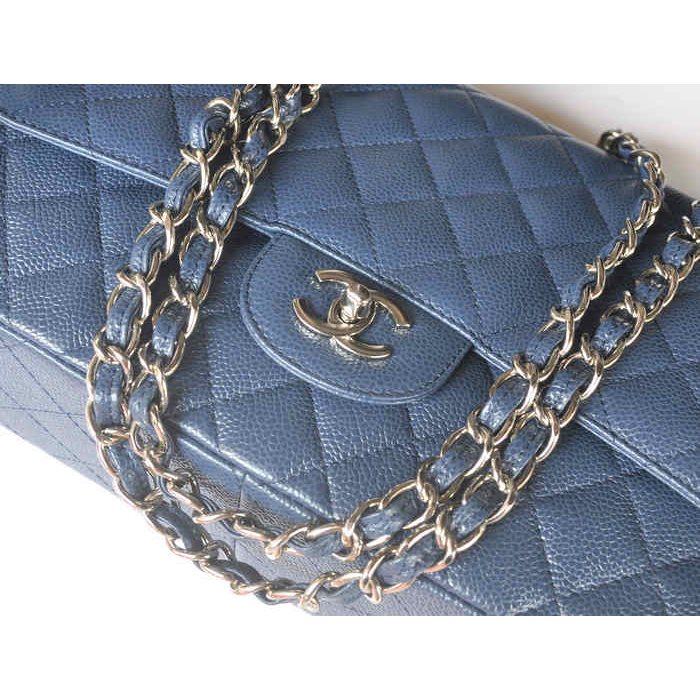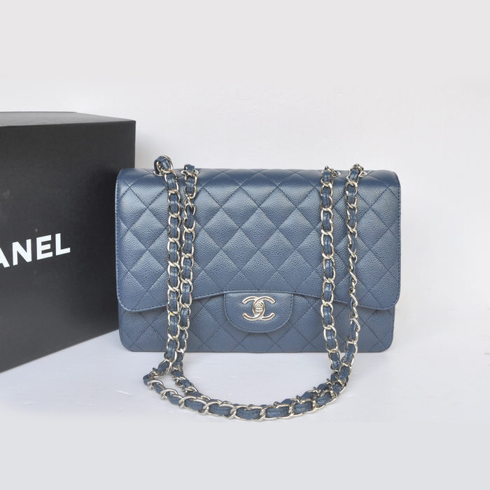 Chanel Jumbo Classic Original Caviar leather Flap Bag A36076 Blue