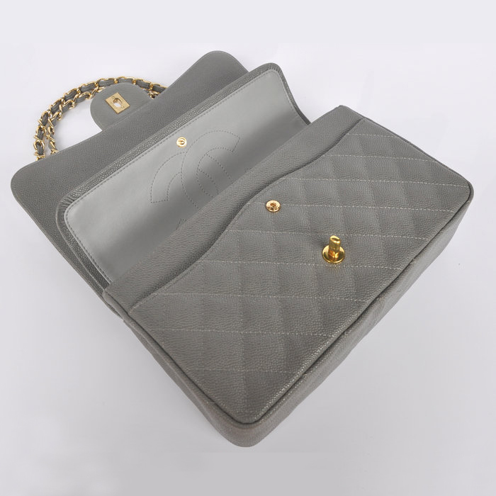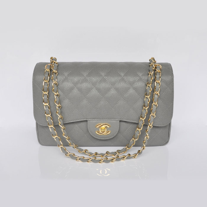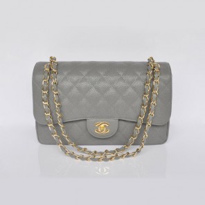 Chanel Jumbo Quilted Classic Caviar leather Flap Bag A58600 Gray Gold