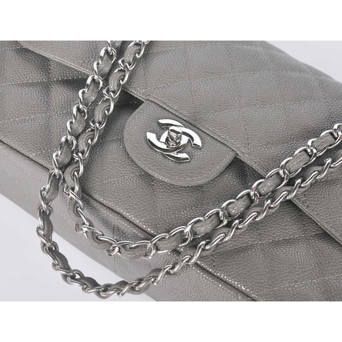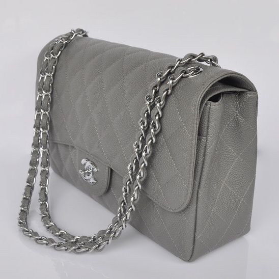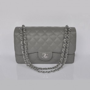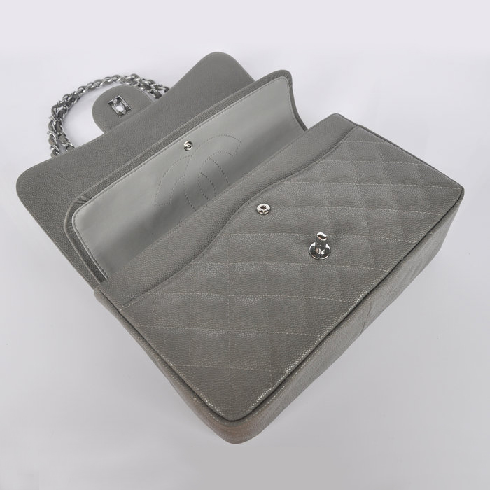 Chanel Jumbo Quilted Classic Caviar leather Flap Bag A58600 Gray Silver