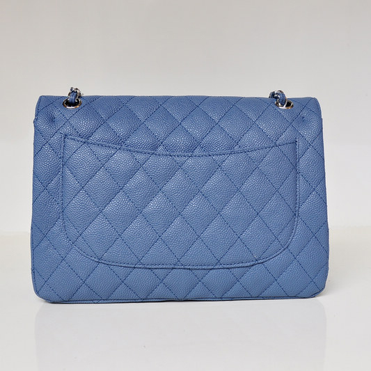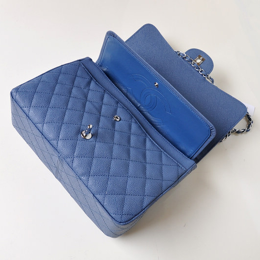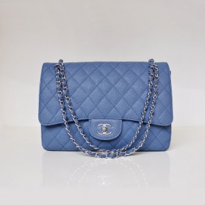 Chanel Jumbo Quilted Classic Caviar leather Flap Bag A58600 blue Silver