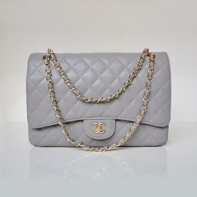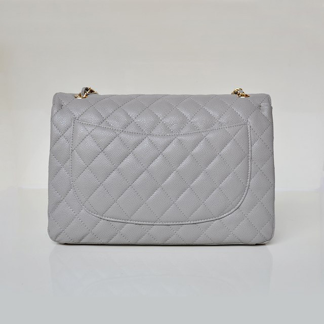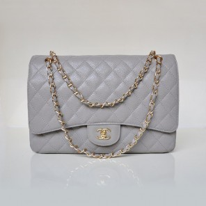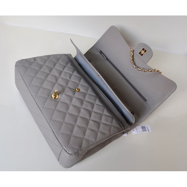 Chanel Jumbo Quilted Classic Caviar leather Flap Bag A58601 Gray in Gold