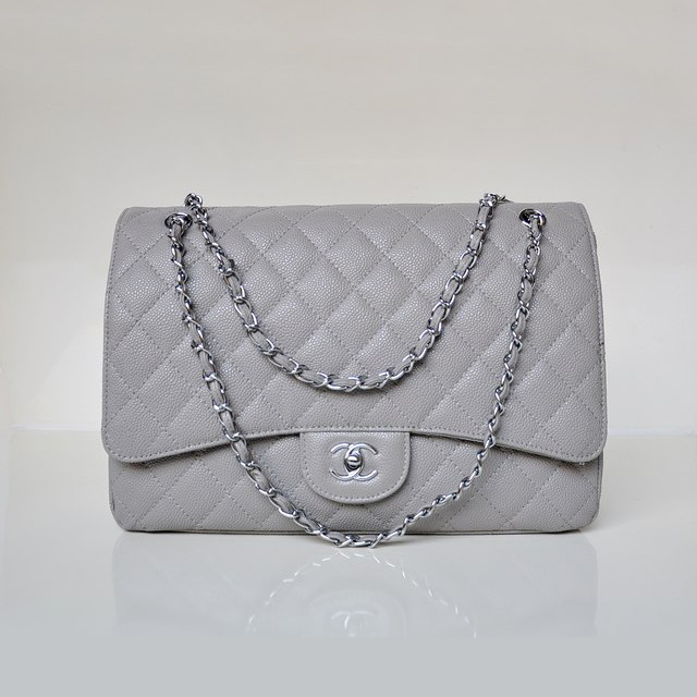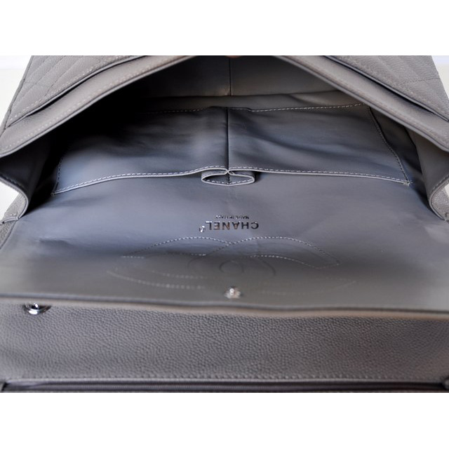 Chanel Jumbo Quilted Classic Caviar leather Flap Bag A58601 Gray in Silver