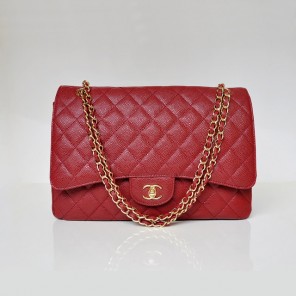 Chanel Jumbo Quilted Classic Caviar leather Flap Bag A58601 red Gold