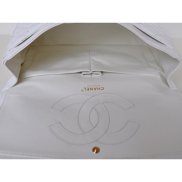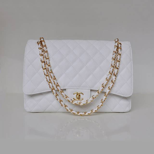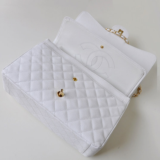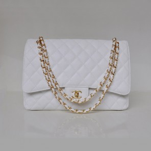 Chanel Jumbo Quilted Classic Caviar leather Flap Bag A58601 white Gold