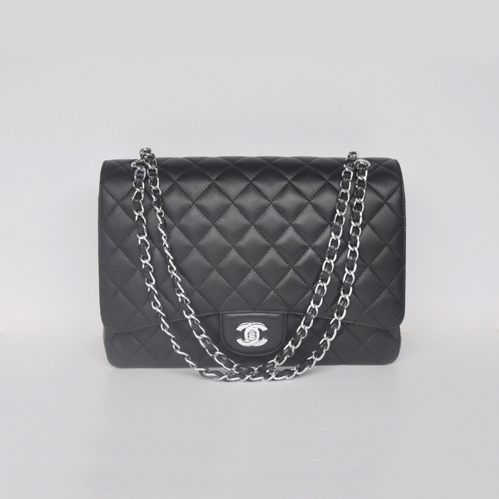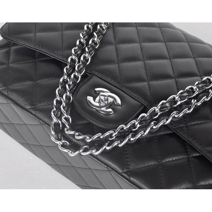 Chanel Jumbo Quilted Classic Sheepskin leather Flap Bag A58601 black Silver