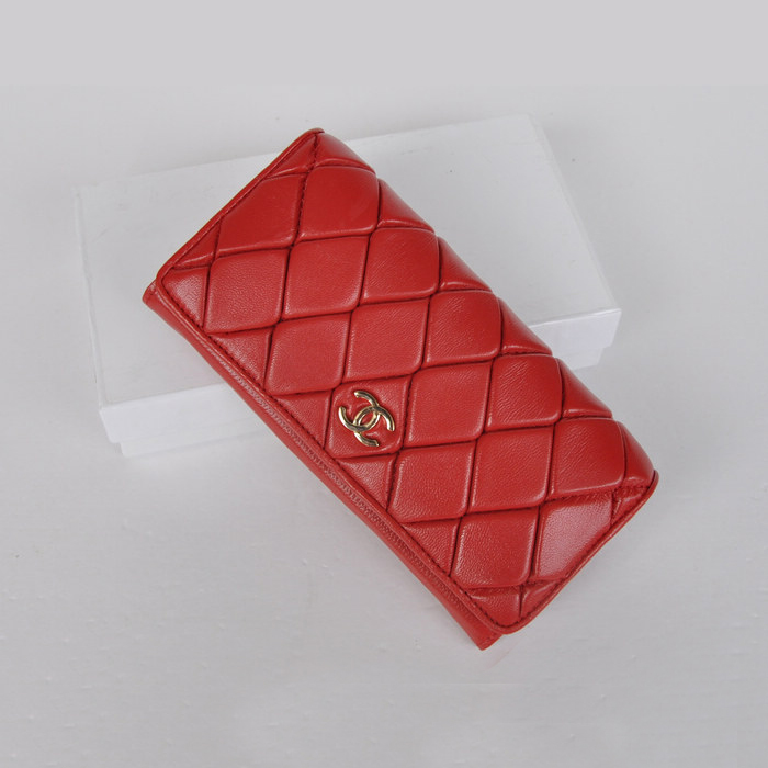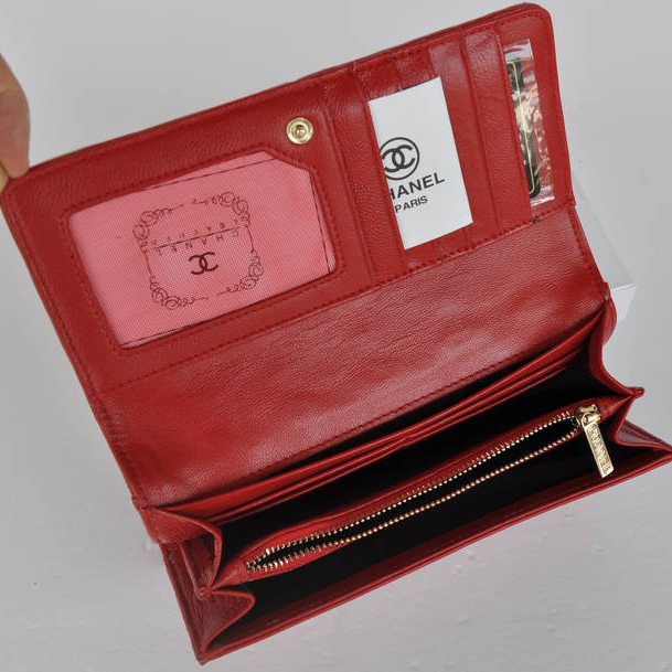 Chanel Lambskin Leather Bi-Fold Wallet C0901 Red