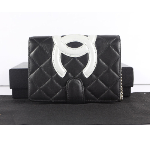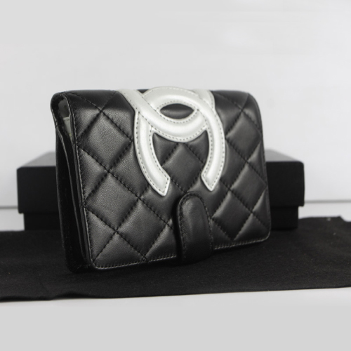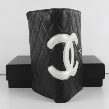 Chanel Matelasse Bi-Fold Wallet Sheepskin Leather C004 Black with white