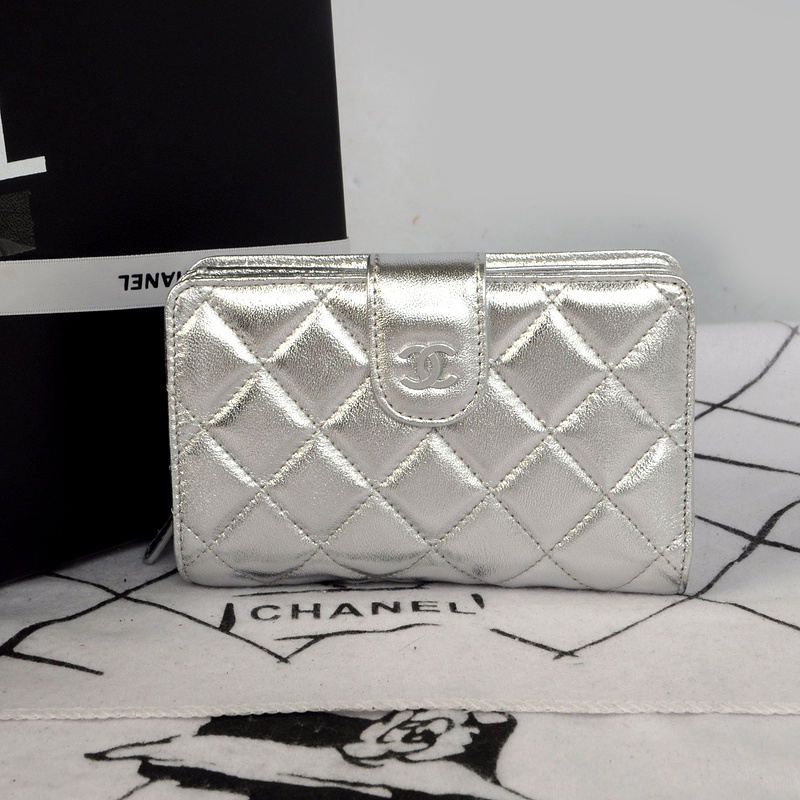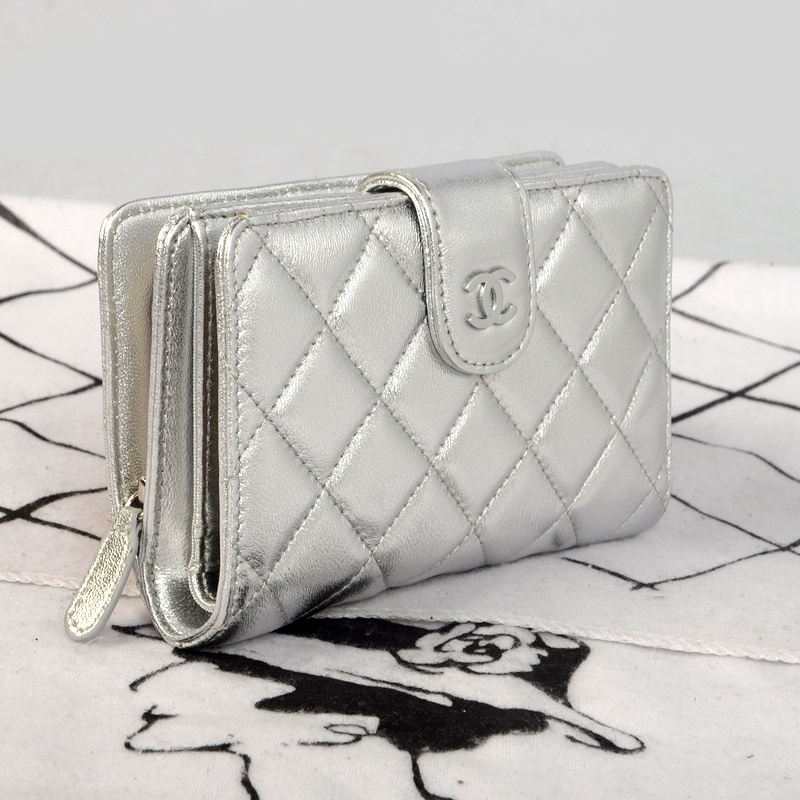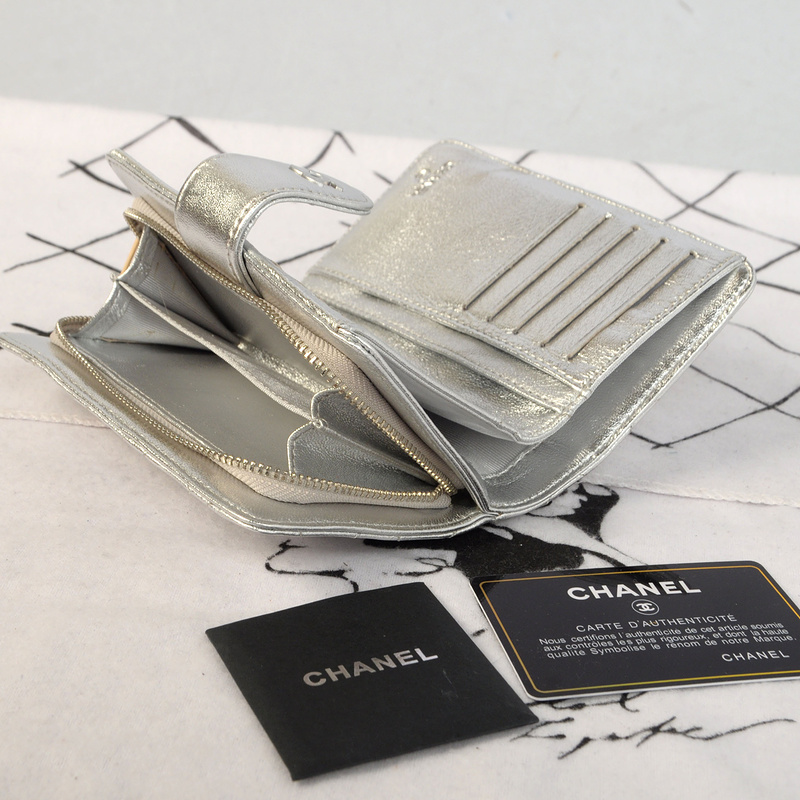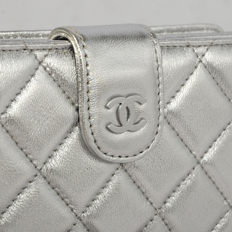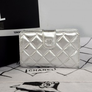 Chanel Matelasse Bi-Fold Wallet Sheepskin Leather C004 Silver