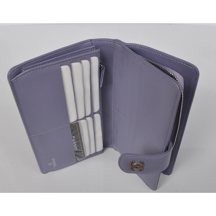 Chanel Matelasse Bi-Fold Wallet Sheepskin Leather C091 Purple