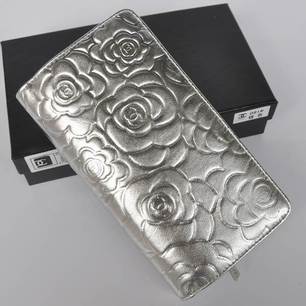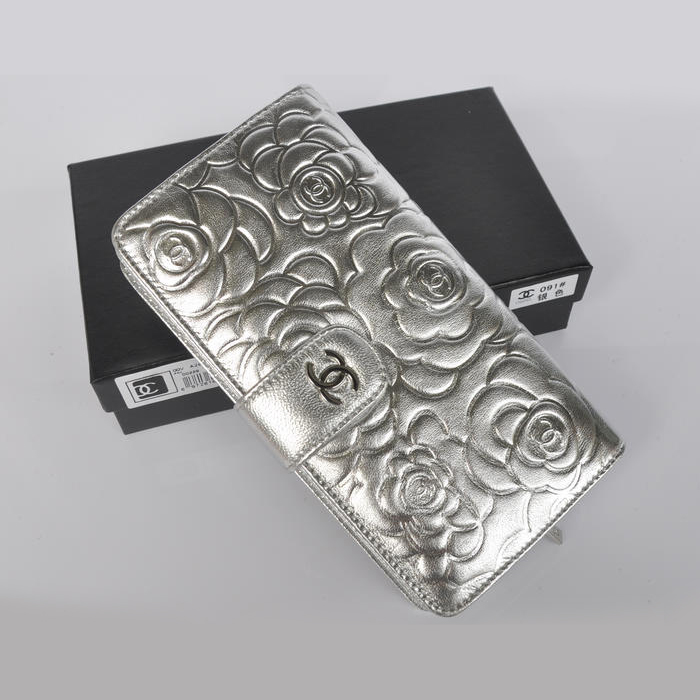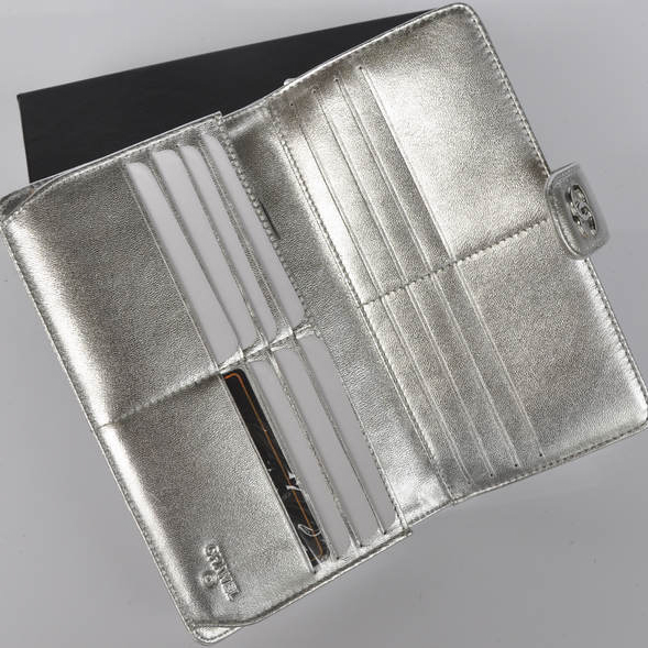 Chanel Matelasse Bi-Fold Wallet Sheepskin Leather C091 Silver