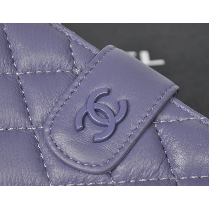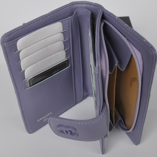 Chanel Matelasse Bi-Fold Wallet Sheepskin Leather C093 Purple