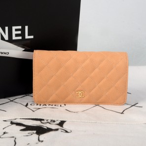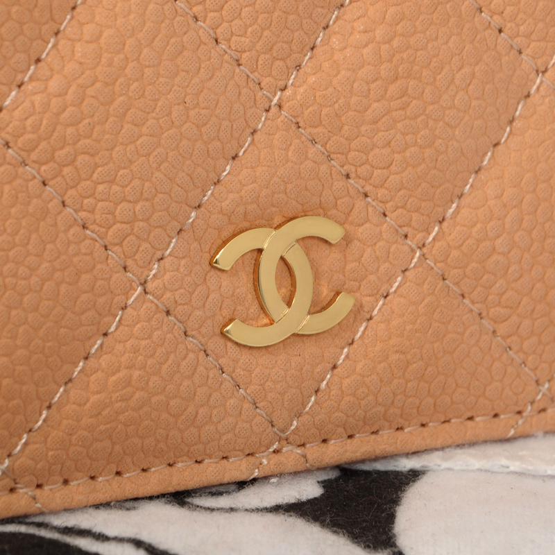 Chanel Matelasse Bi-Fold wallets Original Cannage Pattern Nubuck Leather C001 Apricot
