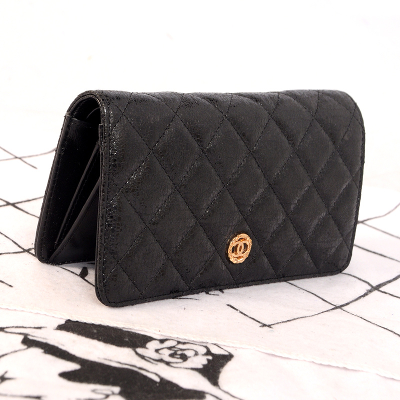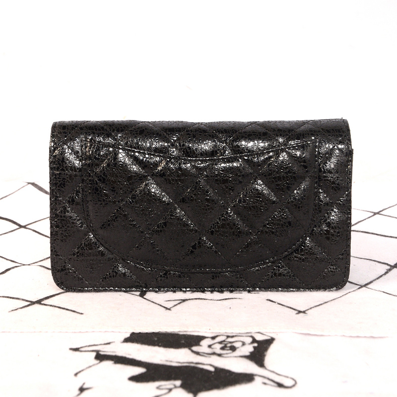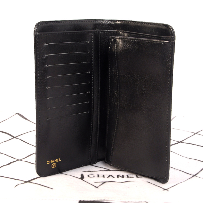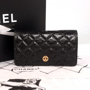 Chanel Matelasse Bi-Fold wallets Original Glazed Crackled Leater C001 Black