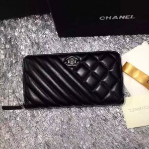 Chanel Matelasse Original Leather Zip Around Wallet A80467 Black