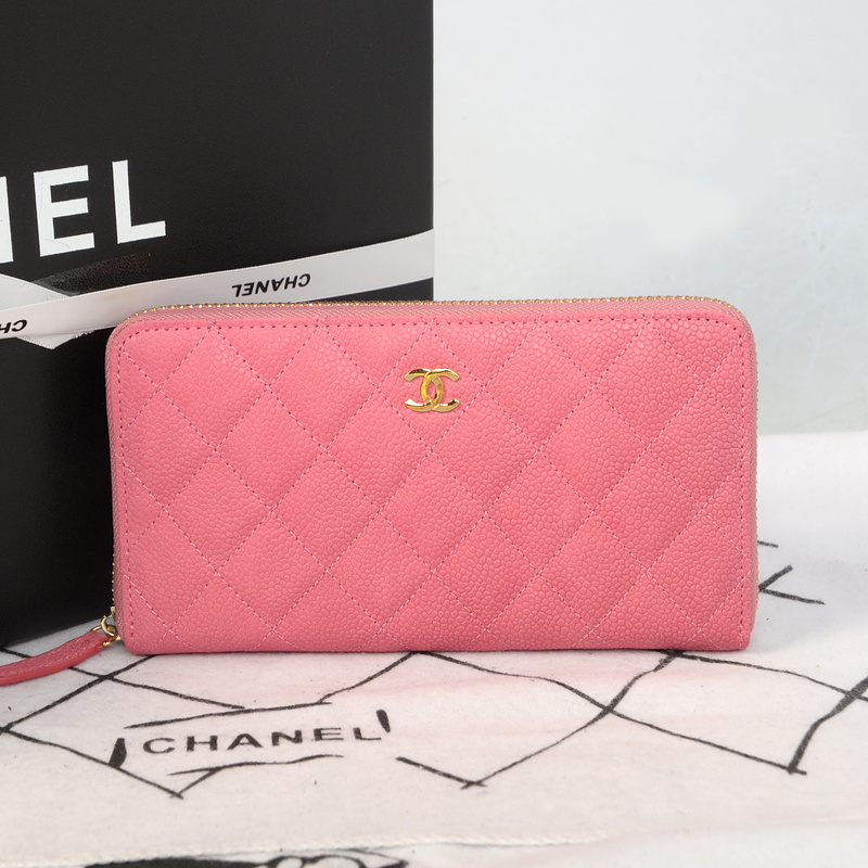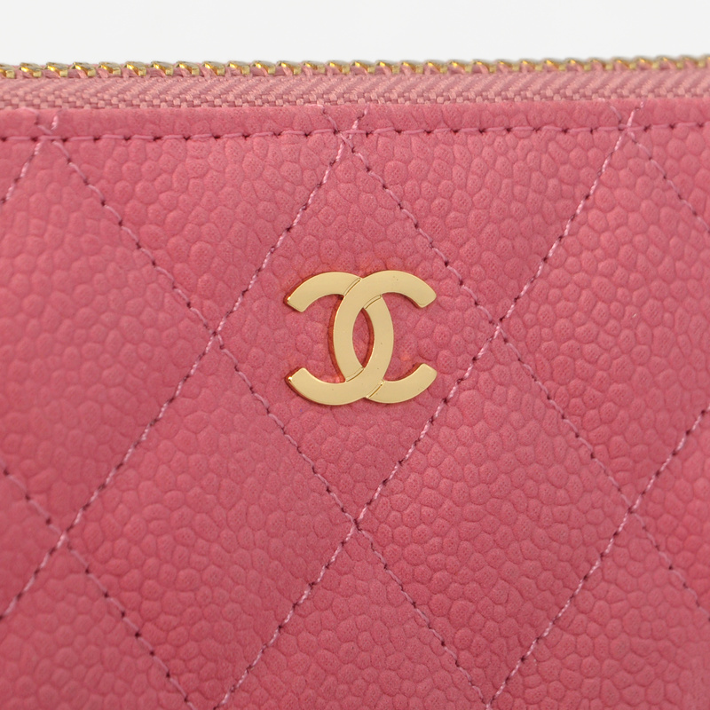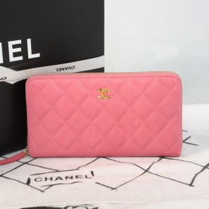 Chanel Matelasse Zip Around Wallet Original Cannage Pattern Nubuck Leather C009 Pink