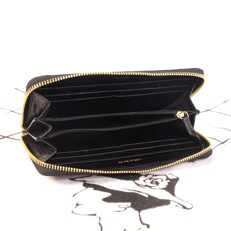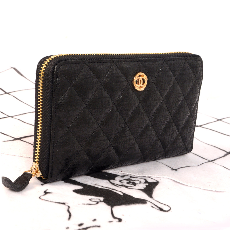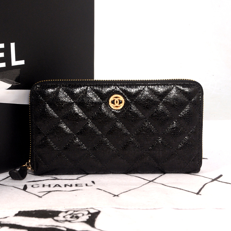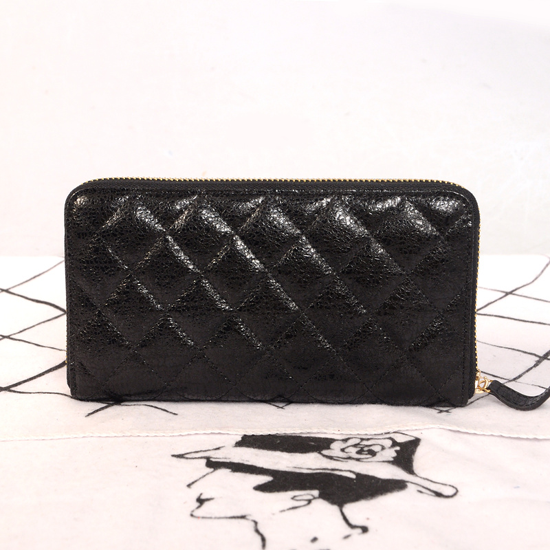 Chanel Matelasse Zip Around Wallet Original Glazed Crackled Leater C009 Black
