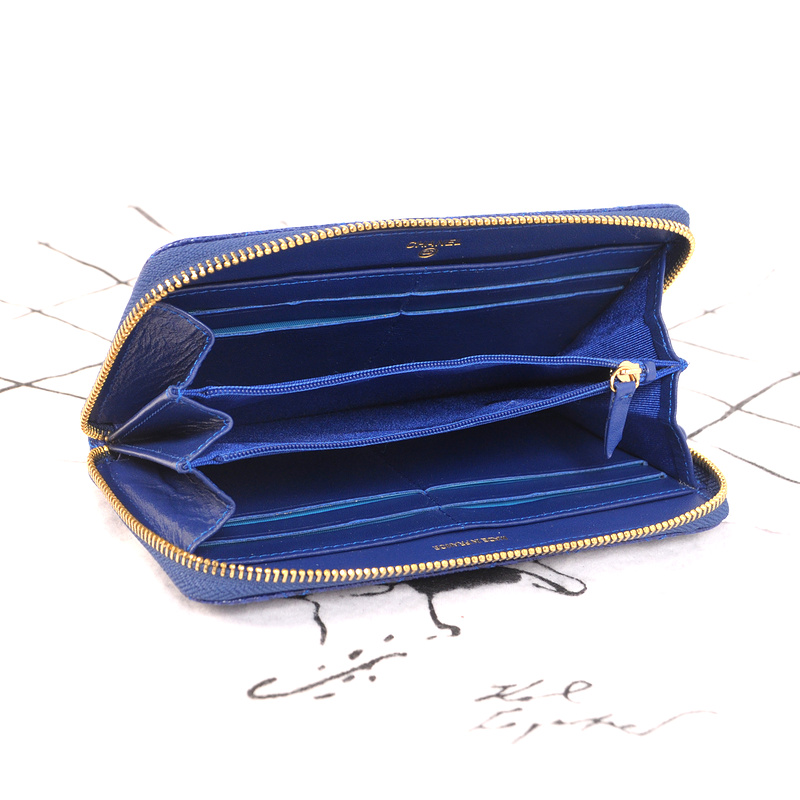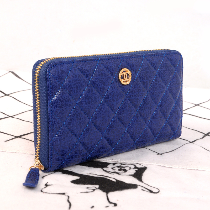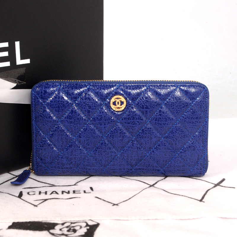 Chanel Matelasse Zip Around Wallet Original Glazed Crackled Leater C009 Blue