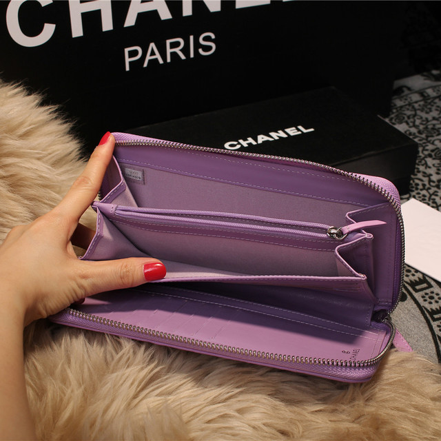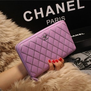 Chanel Matelasse Zip Around Wallet Sheepskin A80132 Lavender