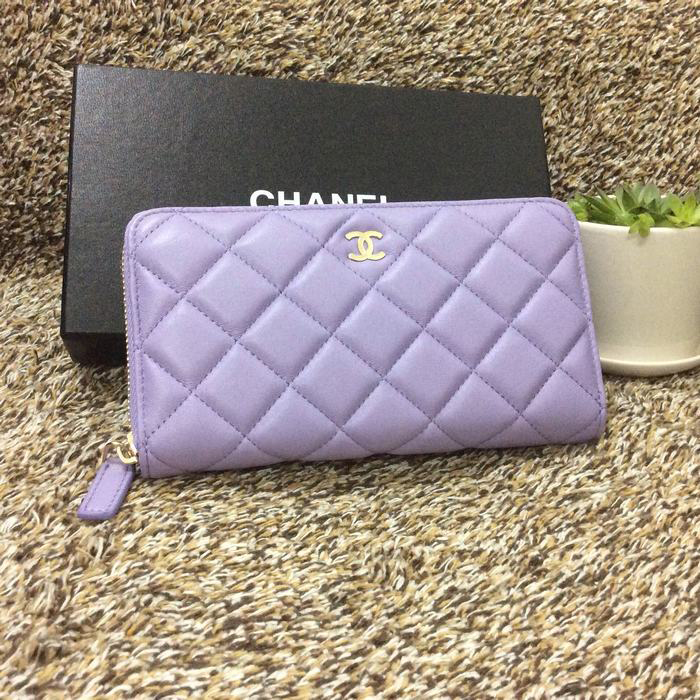 Chanel Matelasse Zip Around Wallet Sheepskin leather A50071 Lavender