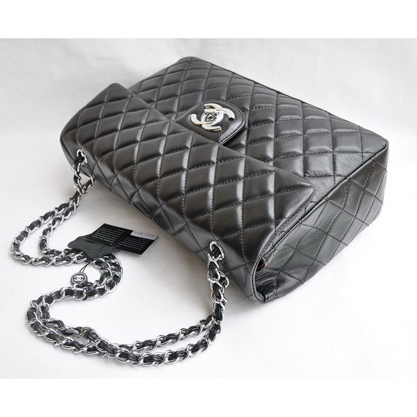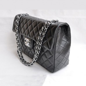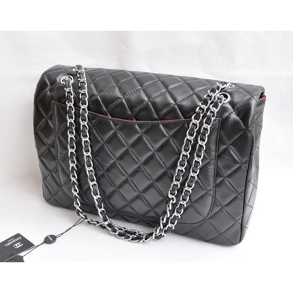 Chanel Maxi Black Lambskin Leather with Silver Hardware Flap Bags 46558