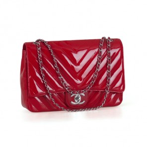 Chanel Patent Leather Chevron Maxi Bag is truly an amazing bag featuring with Chanel鈥檚 classic CC turnlock and patent and polished hardware chain. The internal leather strap with chain enlaced enable you stand out on the street.