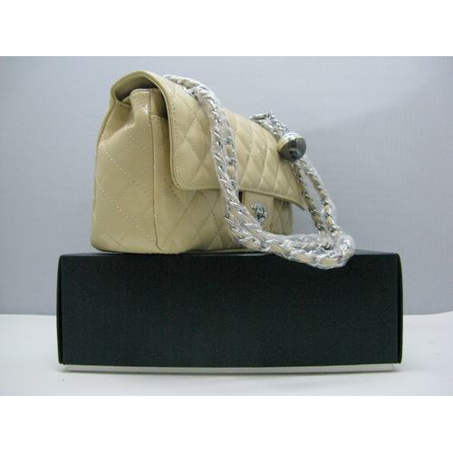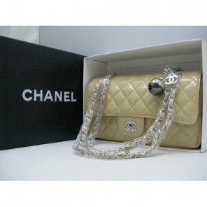 Chanel Patent leather Apricot Flap bag with Silver chain