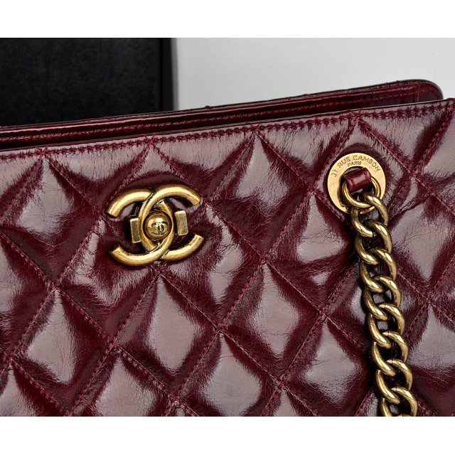Chanel Perfect Edge Original Shiny Calf Leather Shoulder Bag A67030 Claret Burgundy