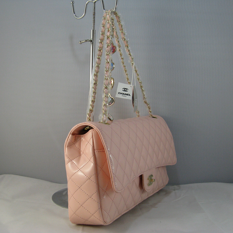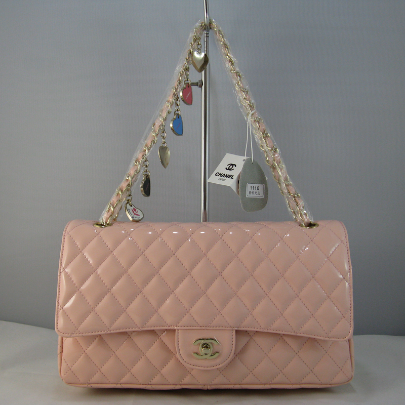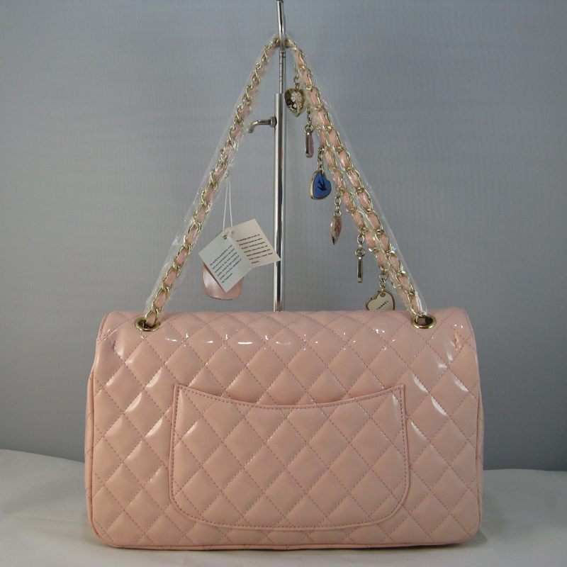 Chanel Pink Patent leather Flap Bag with Gold chain