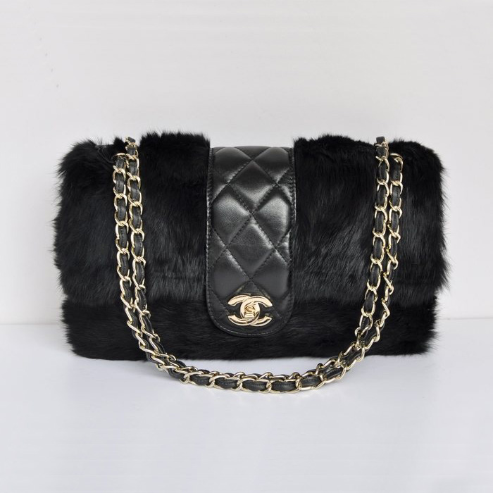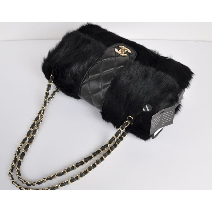 Chanel Rabbit Hair Flap Bag A49155 Black