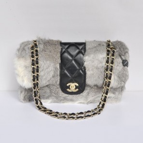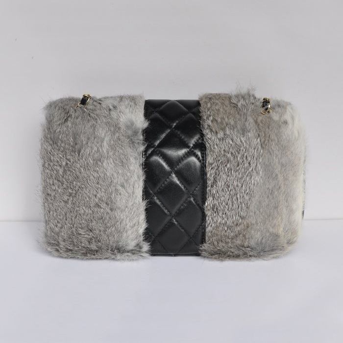 Chanel Rabbit Hair Flap Bag A49155 Grey