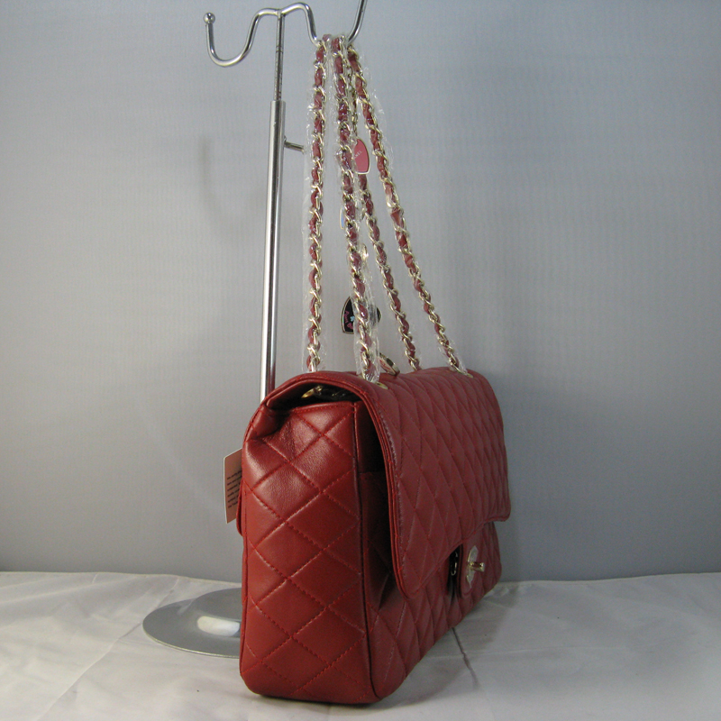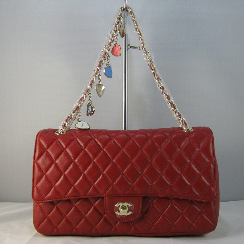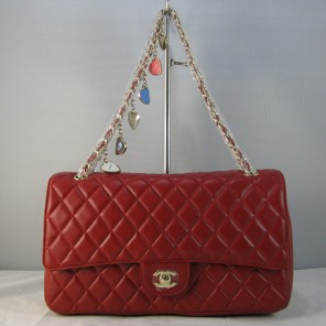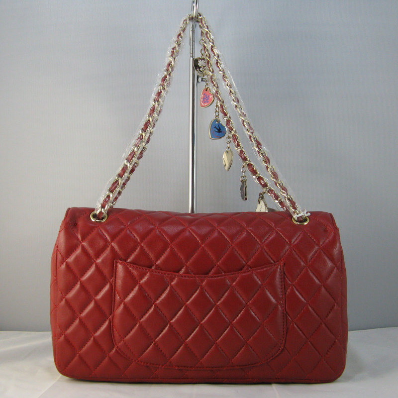 Chanel Red lambskin leather Flap Bag with Gold chain