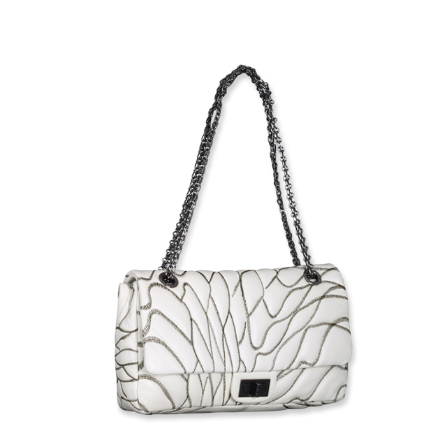 - This CHANEL handbag is made out of pure silver lambskin Leather with matching embroidery