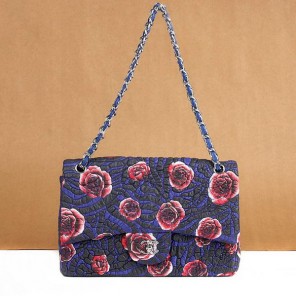 Chanel Rose Flap Bag 3706 Blue-Black Silver