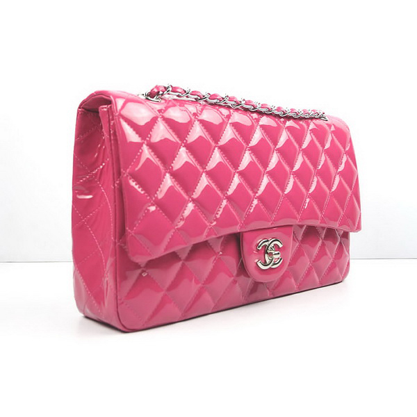 Chanel Silver Chain Quilted Patent Flap Bag 1113 Peach