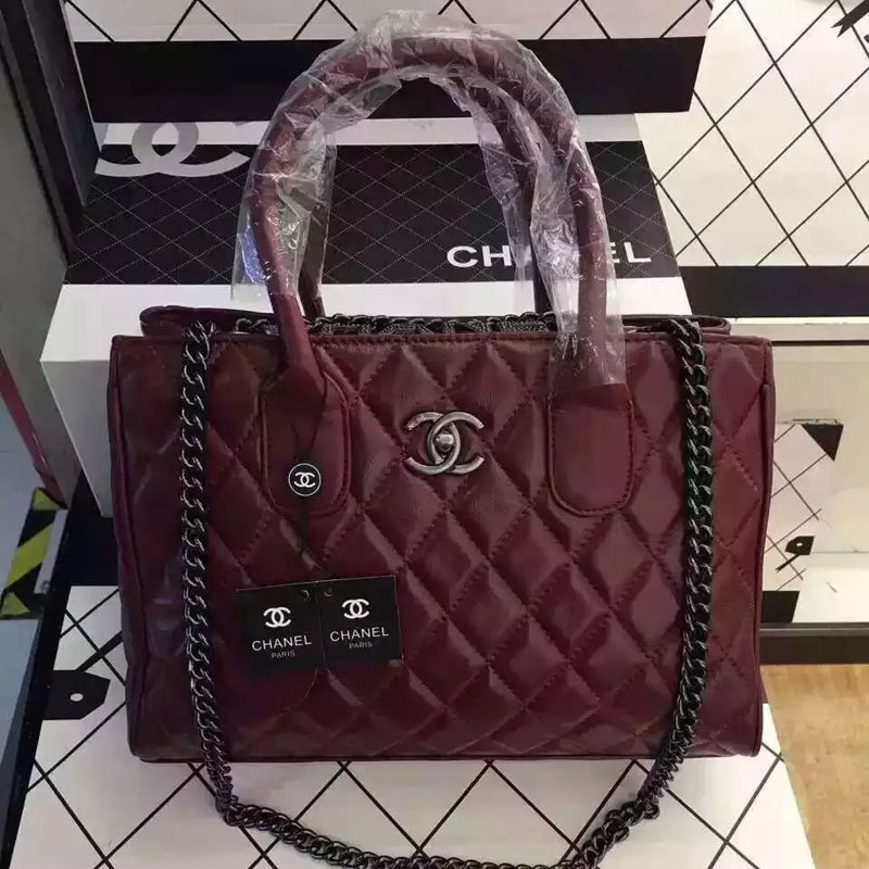 Chanel Top Handle Bag Sheepskin Leather A20215 Burgundy