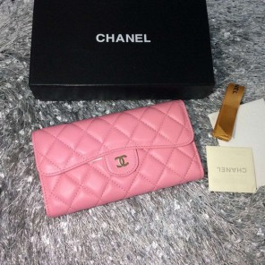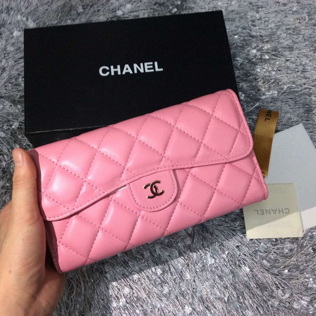 Chanel Tri-Fold Wallet Pink sheepskin leather A31506