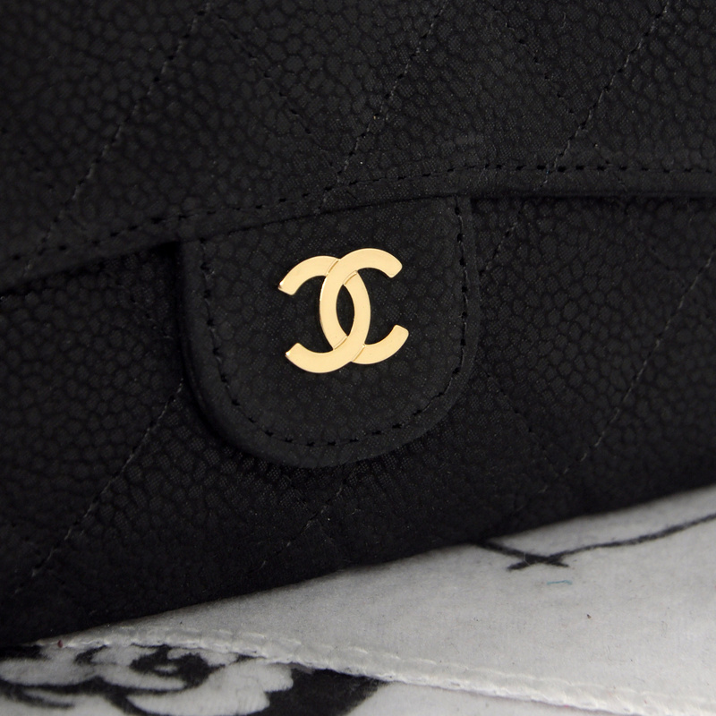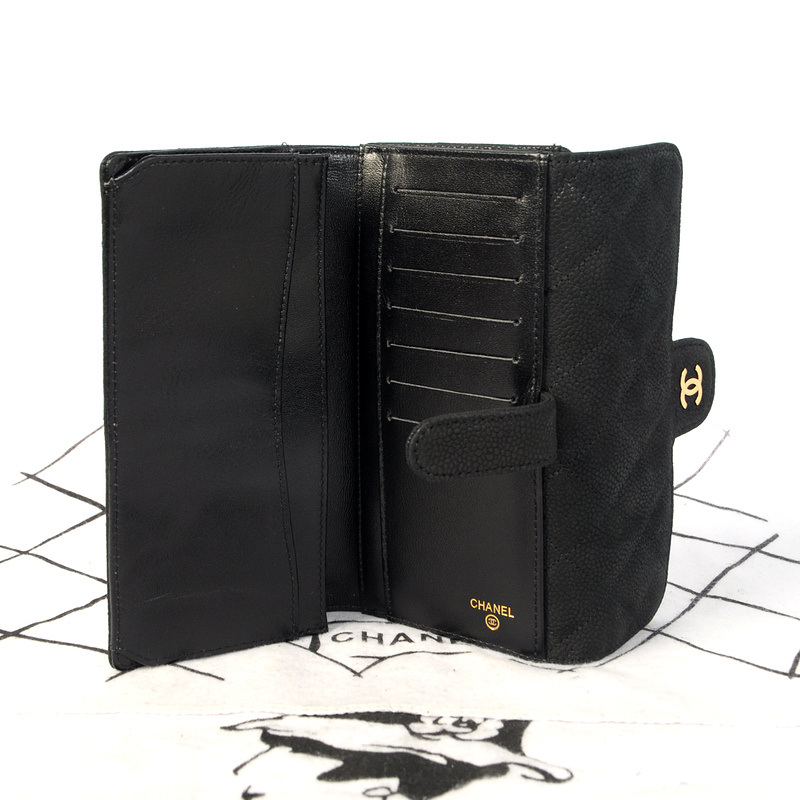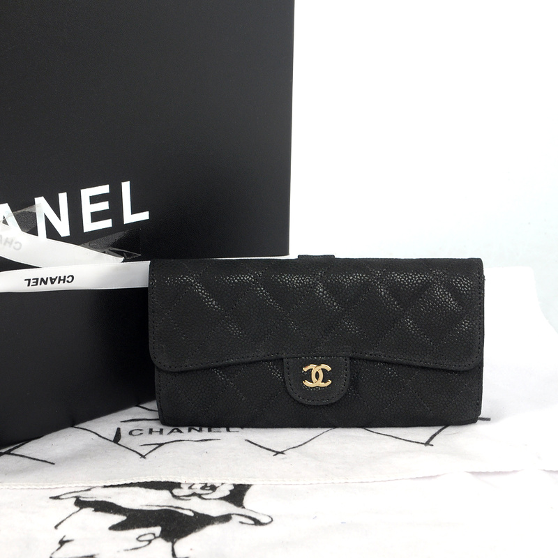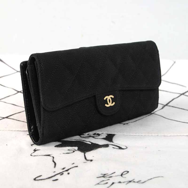 Chanel Tri-Fold Wallet in Original Cannage Pattern Nubuck Leather C007 Black