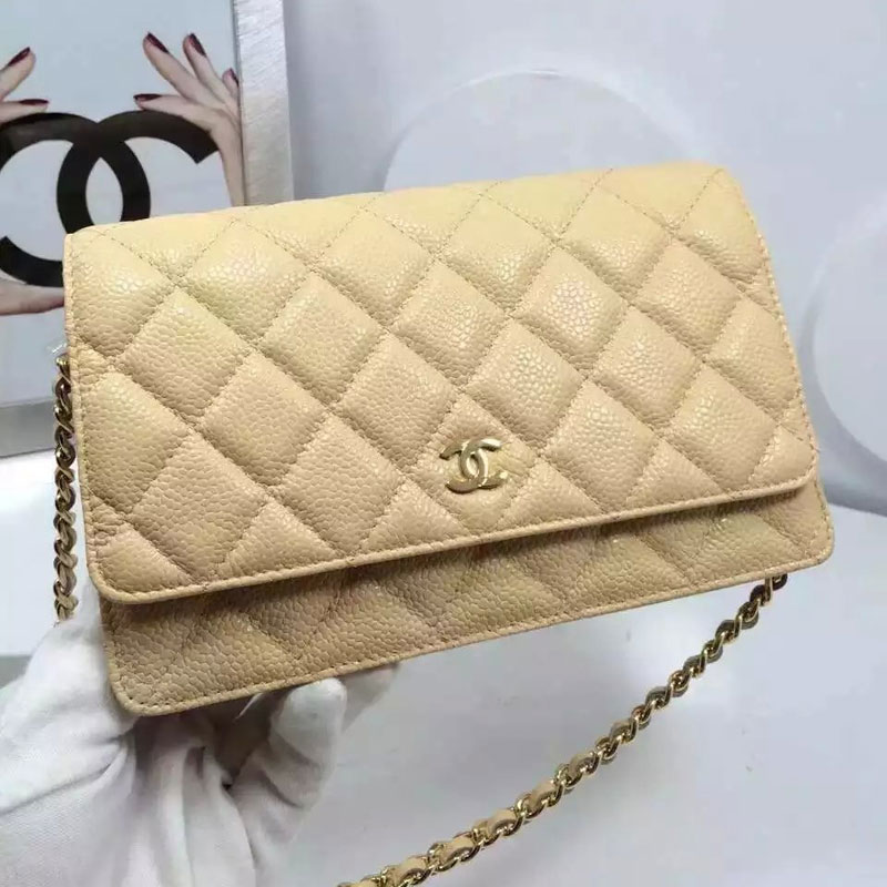 Chanel WOC mini Flap Bag Apricot Original Caviar leather A33808
