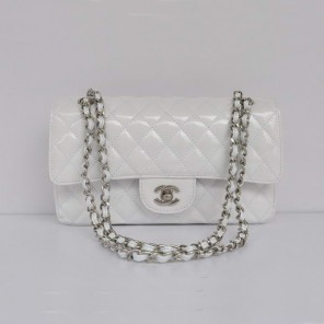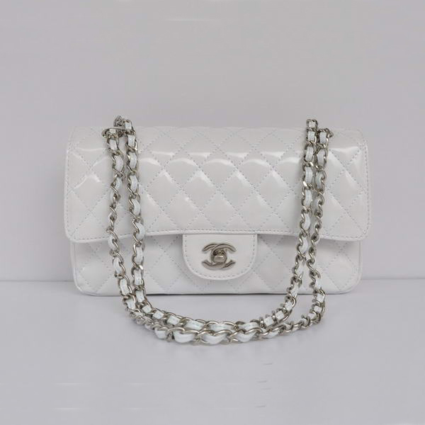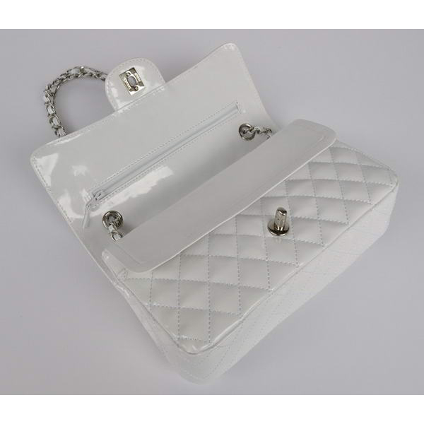 Chanel White Patent Leather Flap Bag Silver Hardware