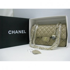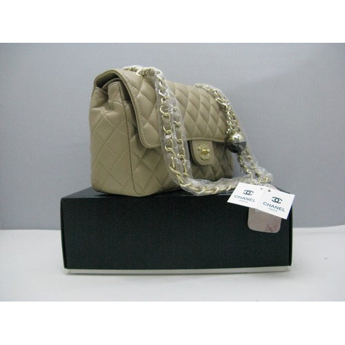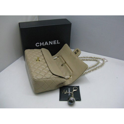 Chanel lambskin leather Apricot Flap bag with Gold chain